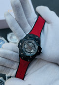 Turn heads with this premium skeleton dial sports watch, designed for those who love performance with style. Featuring a sleek black case, eye-catching red silicone strap, and an open-work dial, this watch perfectly blends luxury and attitude. ⌚❤️