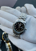 Experience timeless luxury with this Rolex Datejust, a true symbol of class and sophistication. Designed with a premium stainless steel bracelet, a striking black dial, and elegant diamond-style hour markers, this watch delivers a powerful yet refined look. The iconic date window with cyclops lens adds both style and functionality.